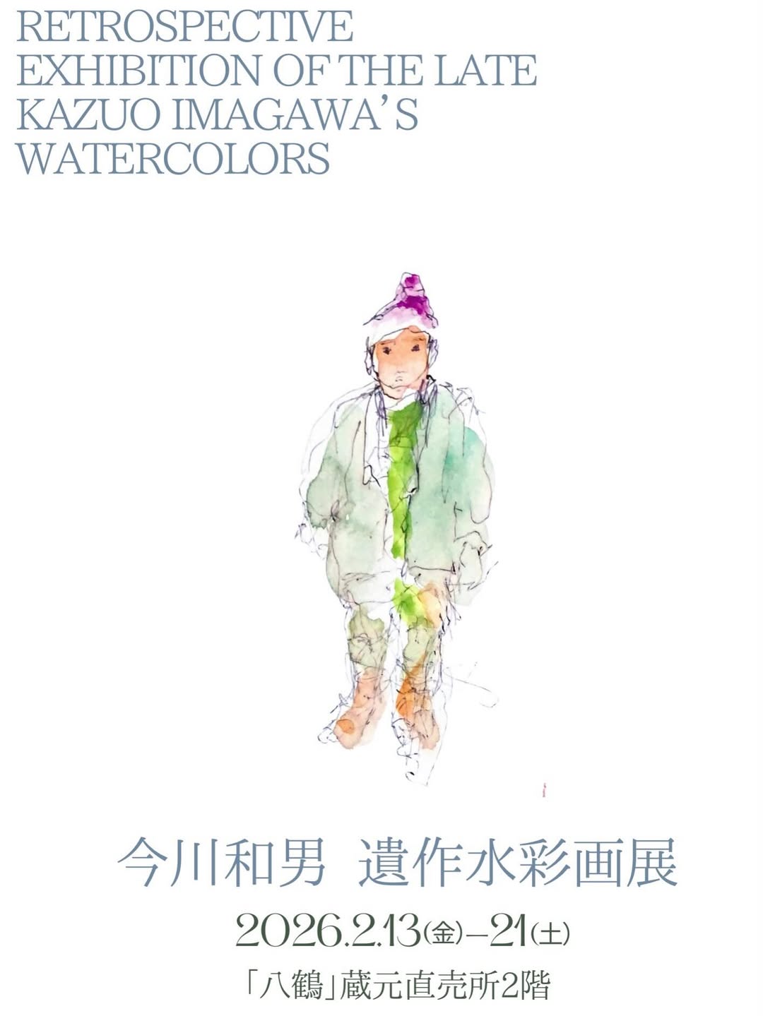 今川和男 遺作水彩画展 Calendar いつ: 2026年2月13日 @ 10:00 – 16:00 Repeats 2026-02-13T10:00:00+09:002026-02-13T16:00:00+09:00どこで: 八鶴 蔵元直売所2階 八戸市八日町1番地料金: 無料連絡先: 今川美術研究所 090-5781-5319 Eメール イベント今川和男が、晩年に描いたえんぶりを題材にした水彩画展を開催します。 未公開の作品群をご覧いただけます。詳しくはこちら