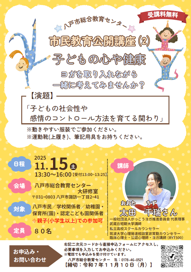 子どもの心や体の健康について、ヨガを取り入れながら考える。