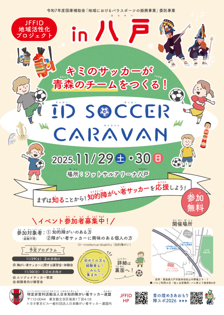 令和7年度JFFID地域活性化プロジェクトin八戸「ID SOCCER CARAVAN」 誰もがいつでもどこでもサッカーができる環境整備 講座