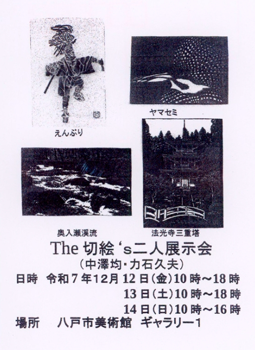 The 切絵’s 二人展示会 カレンダー 日時: 2025年12月12日 @ 10:00 – 18:00 Repeats 2025-12-12T10:00:00+09:002025-12-12T18:00:00+09:00場所: 八戸市美術館 ギャラリー1参加費: 無料お問い合わせ: 八戸市美術館 0178-45-8338 イベント中澤均 力石久夫 切り絵二人展【会期】12月12日(金)~14日(日)10:00~18:00(最終日16:00まで)【場所】ギャラリー1【観覧料】無料詳しくはこちら